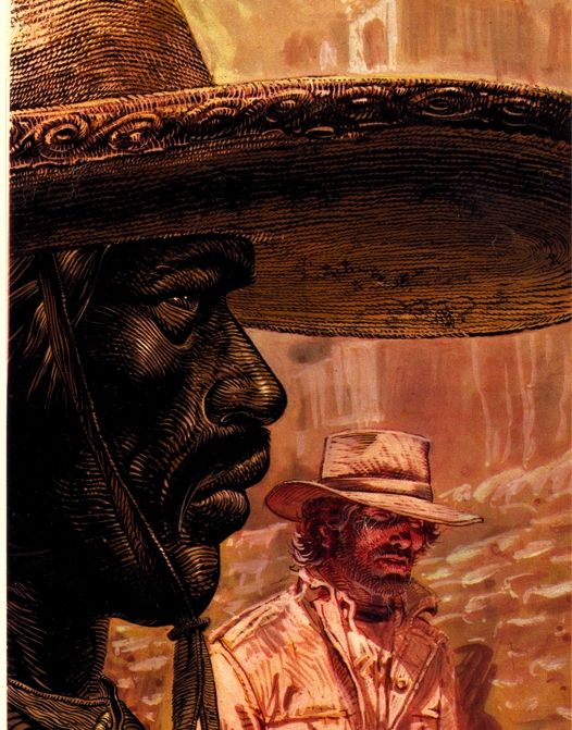 | Página 28. N. C.: Blueberry e o Mexicano. Bico de pena e acrílica. Remake do desenho da capa da revista "Pilote" nº 566, 1970. |