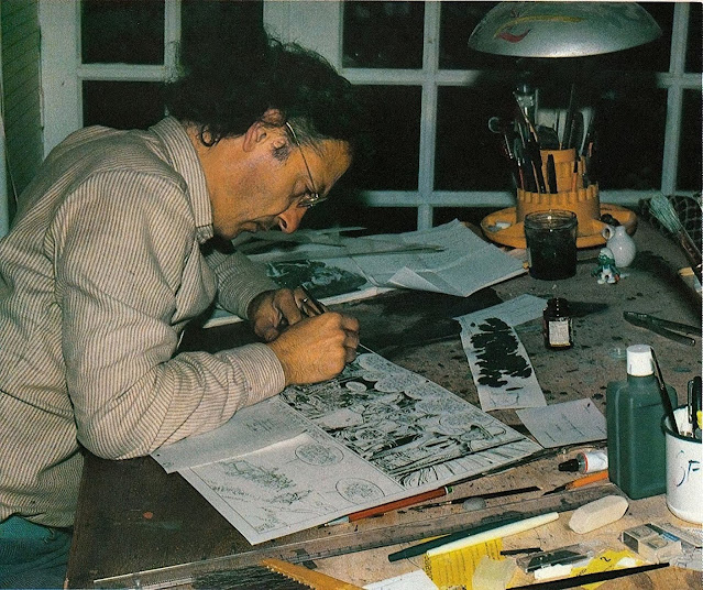 seu ateliê, em Castet, Pirineus Atlânticos, França, desenhando o álbum “La Tribu fantôme”, volume 20 da série “Blueberry”, publicado em 1982 pelas